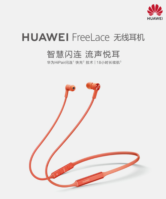 华为 HUAWEI FreeLace 无线耳机 智慧闪连快充 动听人声 蓝牙耳机 运动耳机 华为耳机 曜石黑